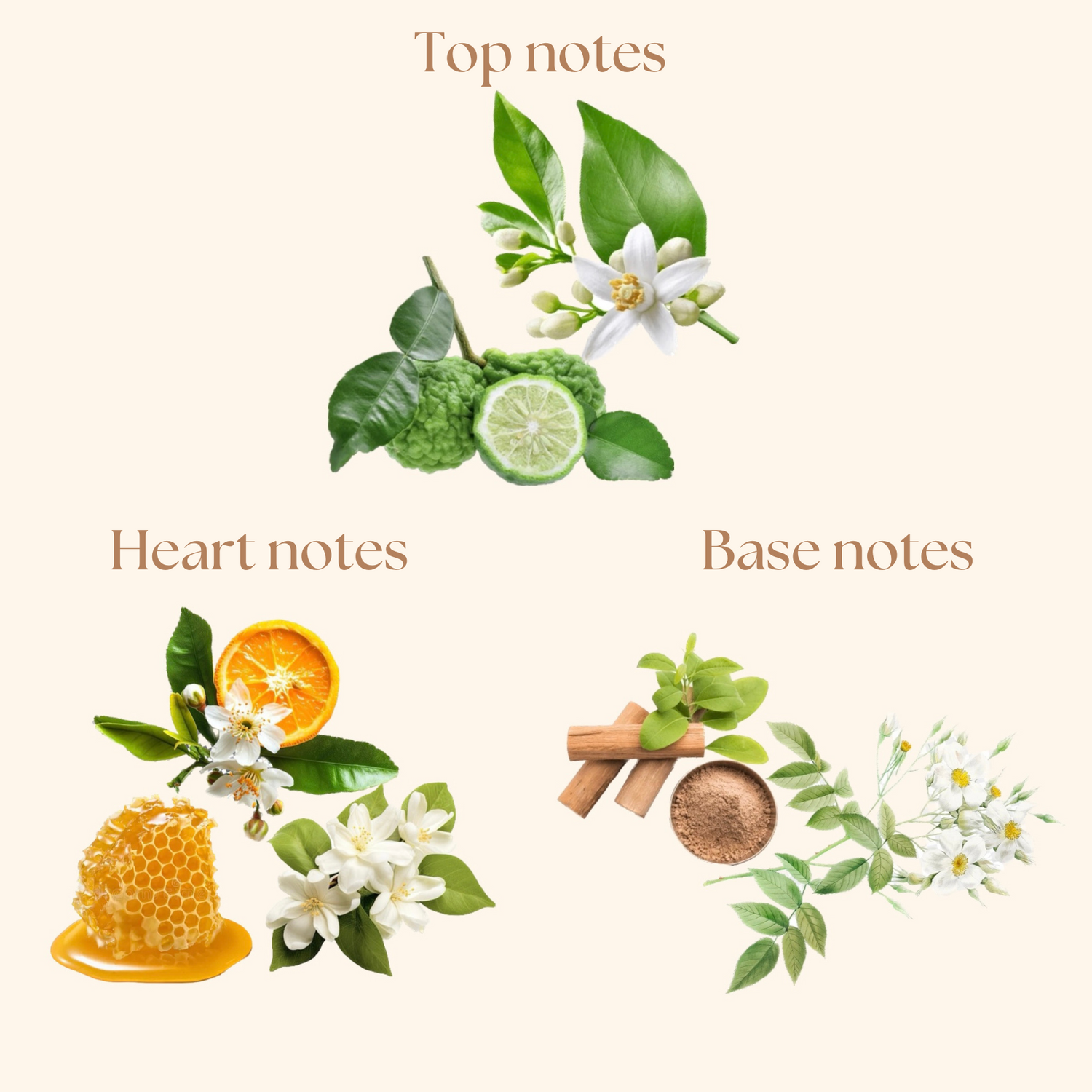 Base notes: Myrrh, Honey, Amber, Leather, Wood